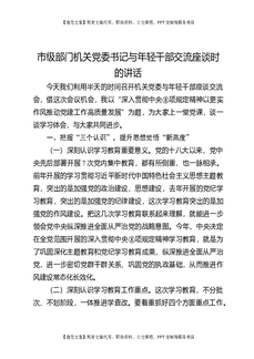市级部门机关党委书记与年轻干部交流座谈时的讲话.docx