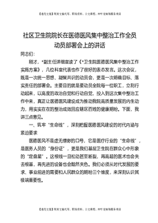 社区卫生院院长在医德医风集中整治工作全员动员部署会上的讲话.docx