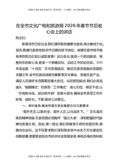 在全市文化广电和旅游局2026年春节节后收心会上的讲话.docx