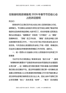 在粮食和物资储备局2026年春节节后收心会上的讲话提纲.docx