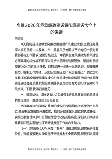 乡镇2026年党风廉政建设暨作风建设大会上的讲话.docx
