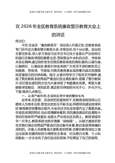 在2026年全区教育系统廉政警示教育大会上的讲话.docx