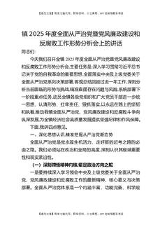 镇2025年度全面从严治党暨党风廉政建设和反腐败工作形势分析会上的讲话.docx