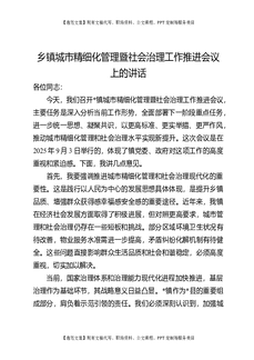 乡镇城市精细化管理暨社会治理工作推进会议上的讲话.docx