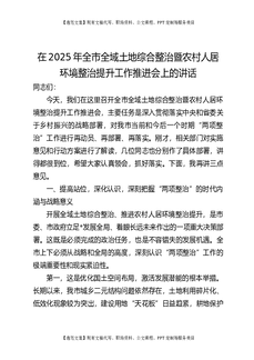 在2025年全市全域土地综合整治暨农村人居环境整治提升工作推进会上的讲话.docx