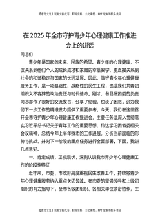 在2025年全市守护青少年心理健康工作推进会上的讲话.docx