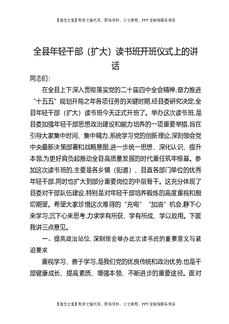 全县年轻干部(扩大)读书班开班仪式上的讲话.docx
