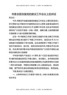 市委全面加强党的建设工作会议上的讲话.docx