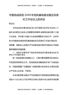 市委统战系统2026年党风廉政建设暨正风肃纪工作会议上的讲话.docx