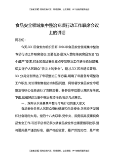 食品安全领域集中整治专项行动工作联席会议上的讲话.docx