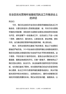 在全区优化营商环境暨规范执法工作推进会上的讲话.docx