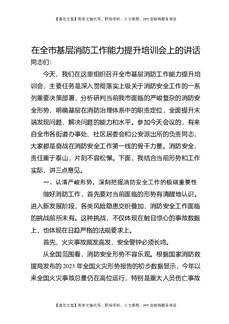 在全市基层消防工作能力提升培训会上的讲话.docx