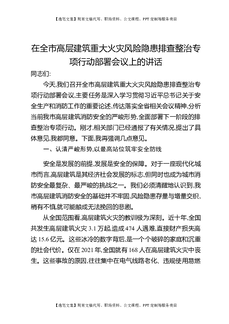 在全市高层建筑重大火灾风险隐患排查整治专项行动部署会议上的讲话.docx