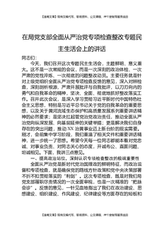 在局党支部全面从严治党专项检查整改专题民主生活会上的讲话.docx
