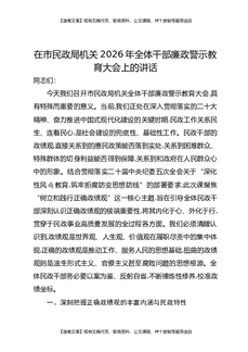在市民政局机关2026年全体干部廉政警示教育大会上的讲话.docx