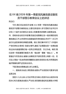 在XX镇2026年第一季度党风廉政建设暨党员干部警示教育会议上的讲话.docx
