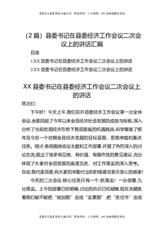 (2篇)县委书记在县委经济工作会议二次会议上的讲话汇编.docx