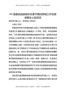 XX县委统战部部长在春节期间宗教领域工作安排部署会上的讲话.docx