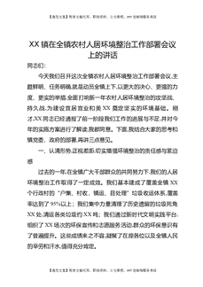 XX镇在全镇农村人居环境整治工作部署会议上的讲话.docx