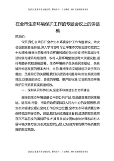 在全市生态环境保护工作的专题会议上的讲话稿.docx