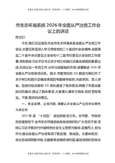 市生态环境系统2026年全面从严治党工作会议上的讲话.docx