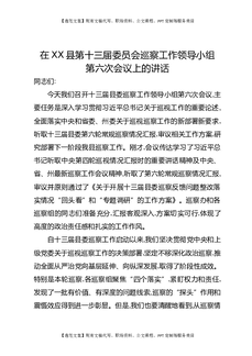在XX县第十三届委员会巡察工作领导小组第六次会议上的讲话.docx