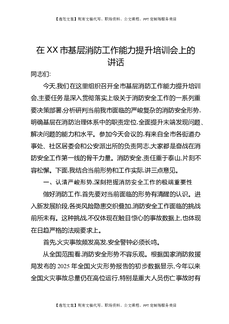 在XX市基层消防工作能力提升培训会上的讲话.docx