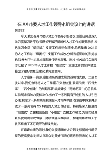 在XX市委人才工作领导小组会议上的讲话.docx