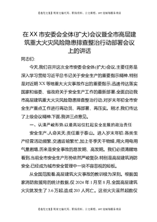 在XX市安委会全体(扩大)会议暨全市高层建筑重大火灾风险隐患排查整治行动部署会议上的讲话.docx