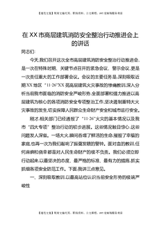 在XX市高层建筑消防安全整治行动推进会上的讲话.docx