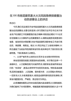 在XX市高层建筑重大火灾风险隐患排查整治动员部署会上的讲话.docx