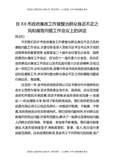 在XX市政府廉政工作暨整治群众身边不正之风和腐败问题工作会议上的讲话.docx