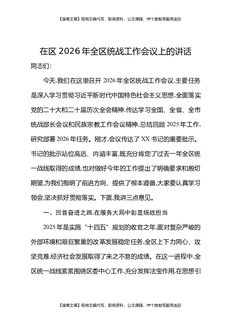 在区2026年全区统战工作会议上的讲话.docx