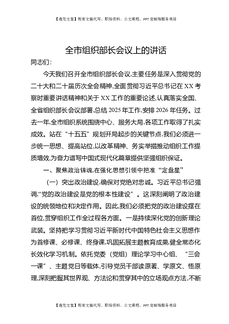 全市组织部长会议上的讲话.docx