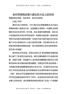 金石桥镇商会第八届会员大会上的讲话.docx