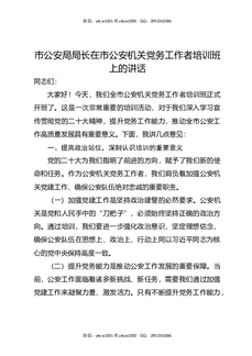 市公安局局长在市公安机关党务工作者培训班上的讲话.docx
