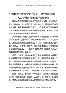 中国教育创新大会上的讲话:社会情感教育,人工智能时代教育的独特价值.docx