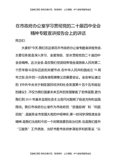 在市政府办公室学习贯彻党的二十届四中全会精神专题宣讲报告会上的讲话.docx