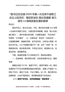 党委书记在全镇2026年第一次全体干部职工会议上的讲话:锚定新坐标,跑出加速度,奋力谱写XX镇高质量发展新篇章.docx