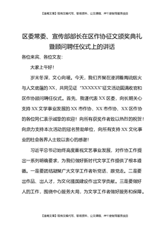 区委常委宣传部部长在区作协征文颁奖典礼暨顾问聘任仪式上的讲话.docx