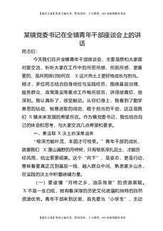 某镇党委书记在全镇青年干部座谈会上的讲话.docx