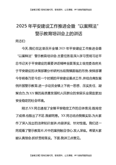 2025年平安建设工作推进会暨以案释法警示教育培训会上的讲话.docx