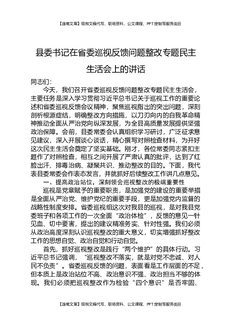 县委书记在省委巡视反馈问题整改专题民主生活会上的讲话.docx