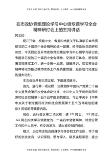 在市政协党组理论学习中心组专题学习全会精神研讨会上的主持讲话.docx