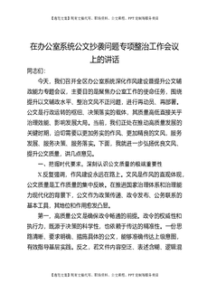 在办公室系统公文抄袭问题专项整治工作会议上的讲话.docx