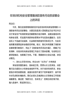 在培训机构安全管理暨消防宣传月动员部署会上的讲话.docx