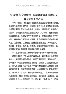 在2025年全县领导干部集体廉政谈话暨警示教育大会上的讲话.docx