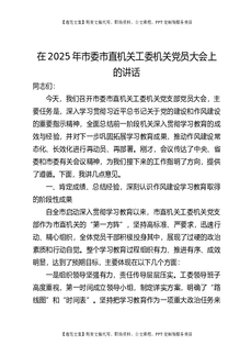 在2025年市委市直机关工委机关党员大会上的讲话.docx