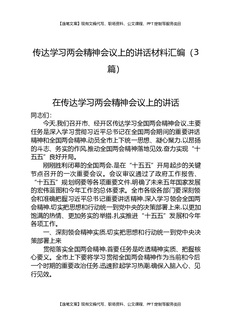 传达学习两会精神会议上的讲话材料汇编(3篇).docx