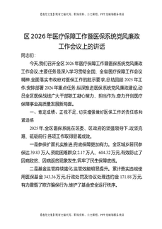 区2026年医疗保障工作暨医保系统党风廉政工作会议上的讲话.docx